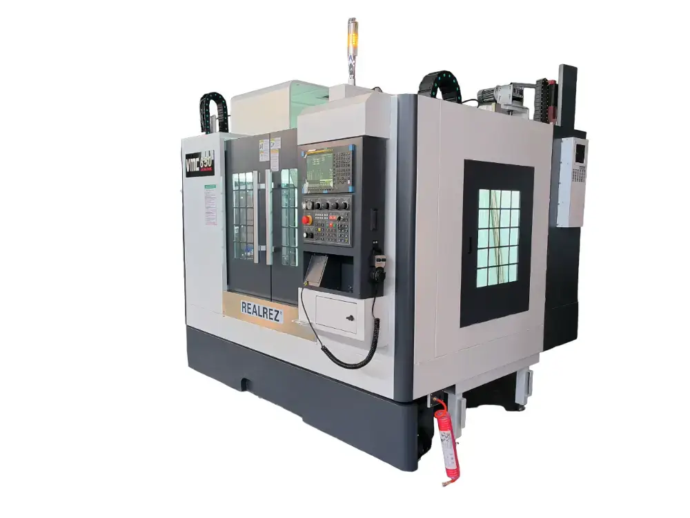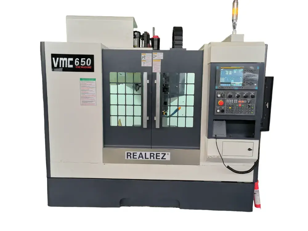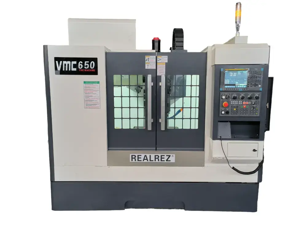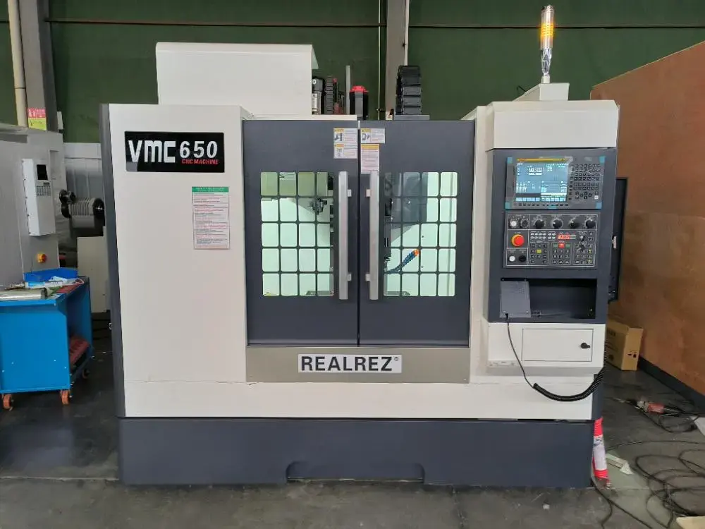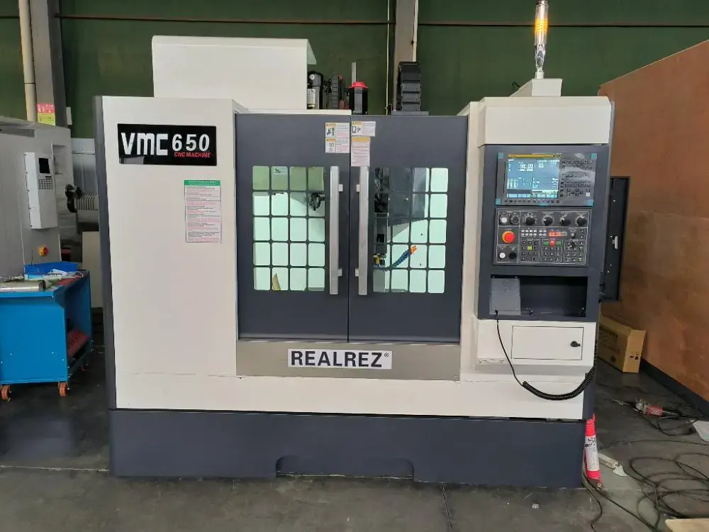Фрезерный обрабатывающий центр с ЧПУ Realrez VMC650 с высокой несущей способностью. Линейные рельсовые направляющие по трём осям, широкие и имеют большой пролет. Конструкция и внешние размеры станка компактны и разумны. Главный вал приводится в движение преобразователем частоты или серводвигателем через синхронный ремень. Обрабатывающий центр может осуществлять зажим сложных деталей, таких как различные диски, пластины, гильзы, кулачки, формы и т. д. А также может выполнять различные процессы, такие как сверление, фрезерование, растачивание, расширение, развертывание, жесткое нарезание резьбы и т. д. Производство мелкосерийных и средних партий продукции позволяет удовлетворить обработку сложных и высокоточных деталей. Он может быть оснащен четвертой осью вращения для удовлетворения требований обработки специальных деталей.