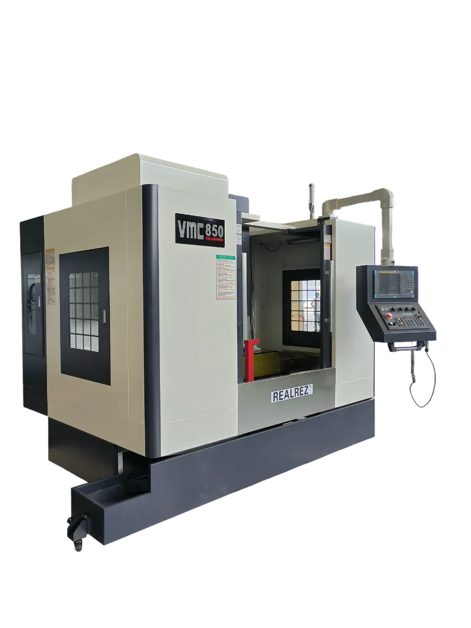 VMC850 – вертикальный обрабатывающий центр с трехосным сервоприводом с прямым подключением по осям X, Y и Z. Конструкция и внешние размеры станка компактны и разумны. Вертикальный центр может осуществлять зажим сложных деталей, таких как различные диски, пластины, гильзы, кулачки, формы и т. д. А также может выполнять различные процессы, такие как сверление, фрезерование, растачивание, расширение, развертывание, жесткое нарезание резьбы и т. д. Производство мелкосерийных и средних партий продукции позволяет удовлетворить обработку сложных и высокоточных деталей. Может быть оснащен четвертой осью вращения для удовлетворения требований обработки специальных деталей.