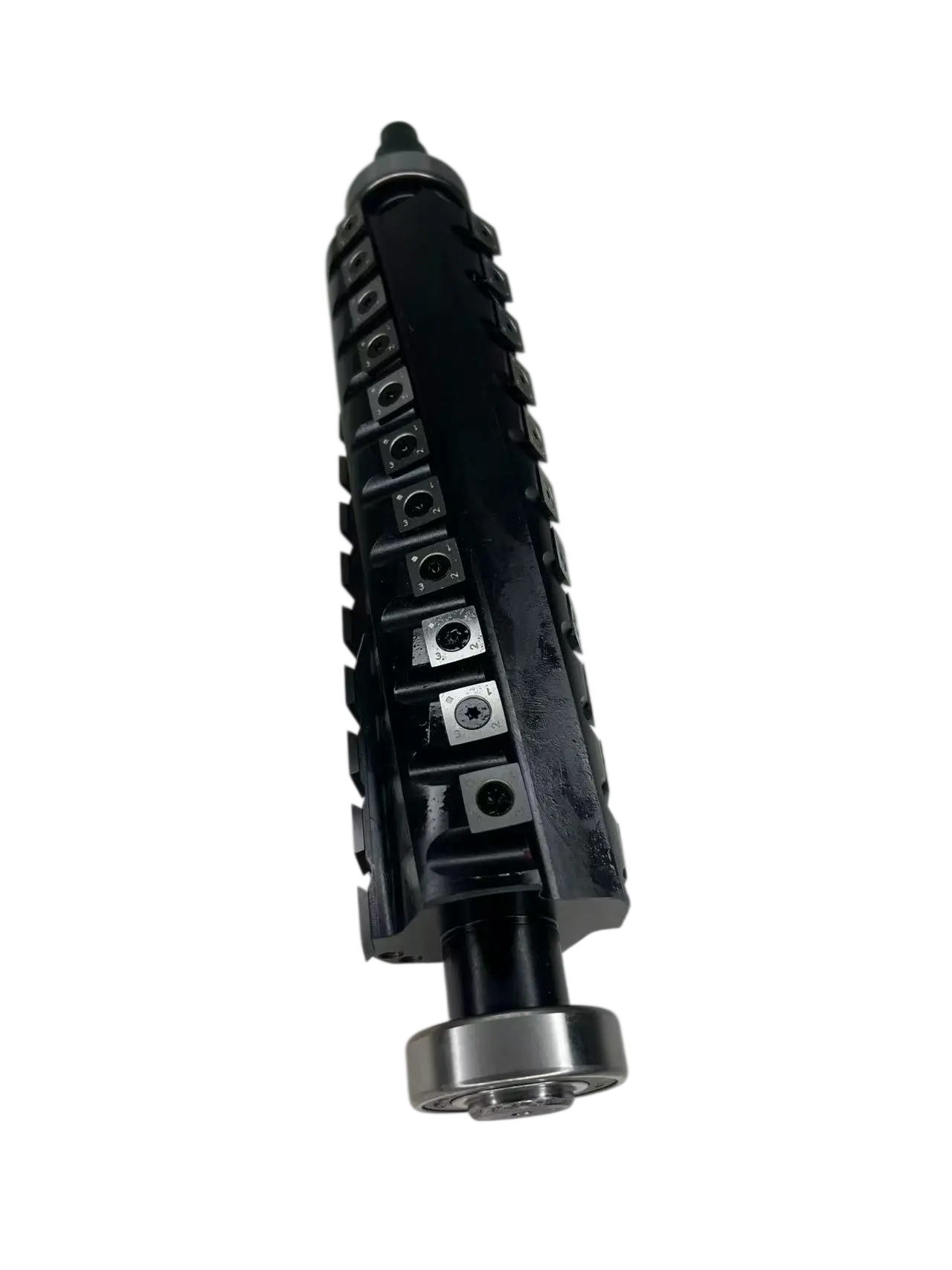 Вал строгальный REALREZ Helical 260 оснащен 44 режущими пластинами, размещенными по спирали, за счет этого лезвия входят в заготовку последовательно и под углом, что снижает шум, вибрацию, ударные нагрузки и дает более чистый рез. Каждый сегмент имеет по четыре режущих кромки, что кратно увеличивает их ресурс: по мере необходимости лезвия переворачиваются или выборочно заменяются.